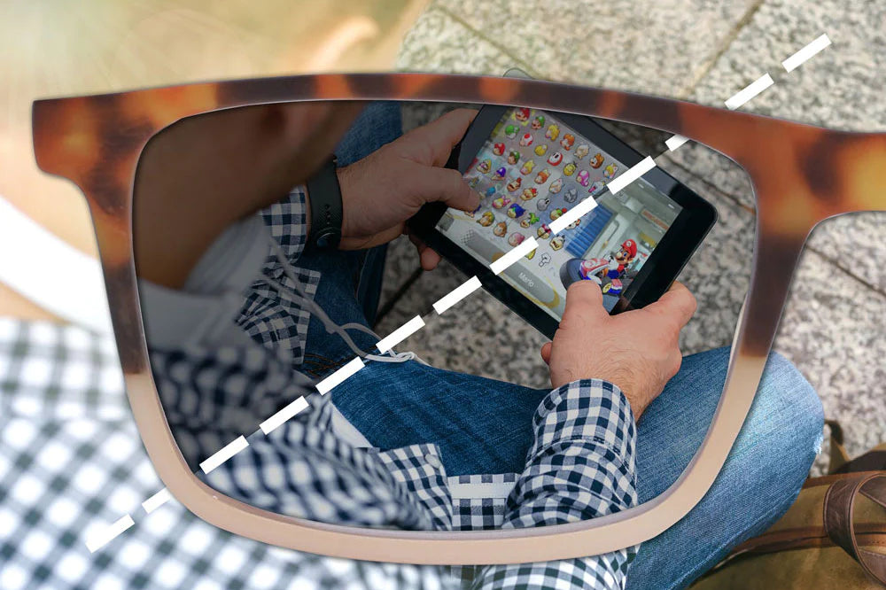 Premium blue light blocking lens technology that protects against glare, filters harmful high energy visible light (HEV) and helps reduce eye strain and fatigue.