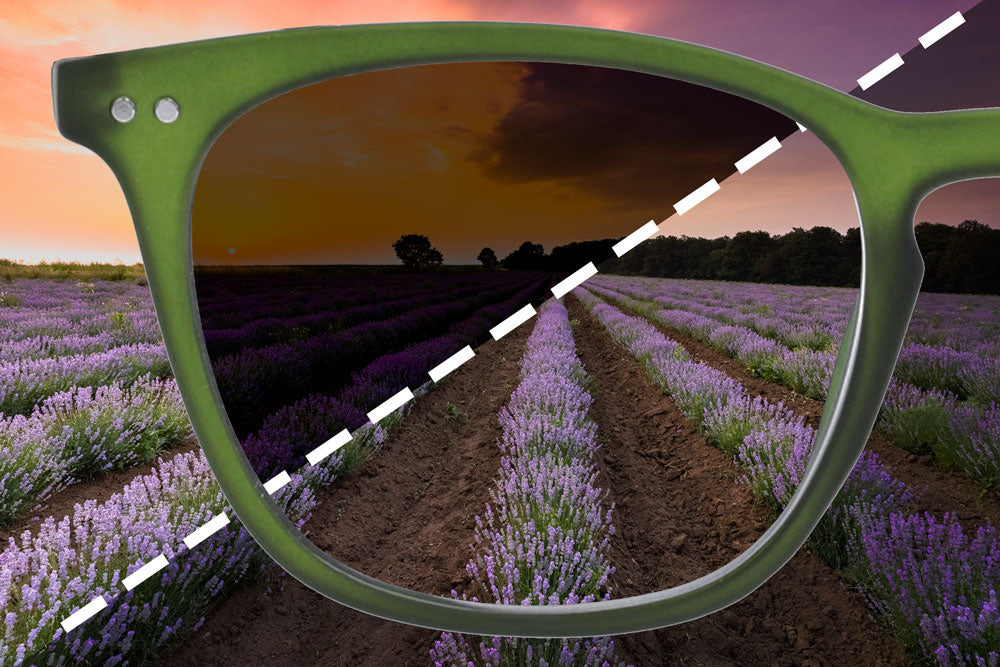 Premium photochromic lens technology that darkens and automatically adjusts to the perfect viewing tint when outdoors while providing 100% UV protection against UVA and UVB rays.